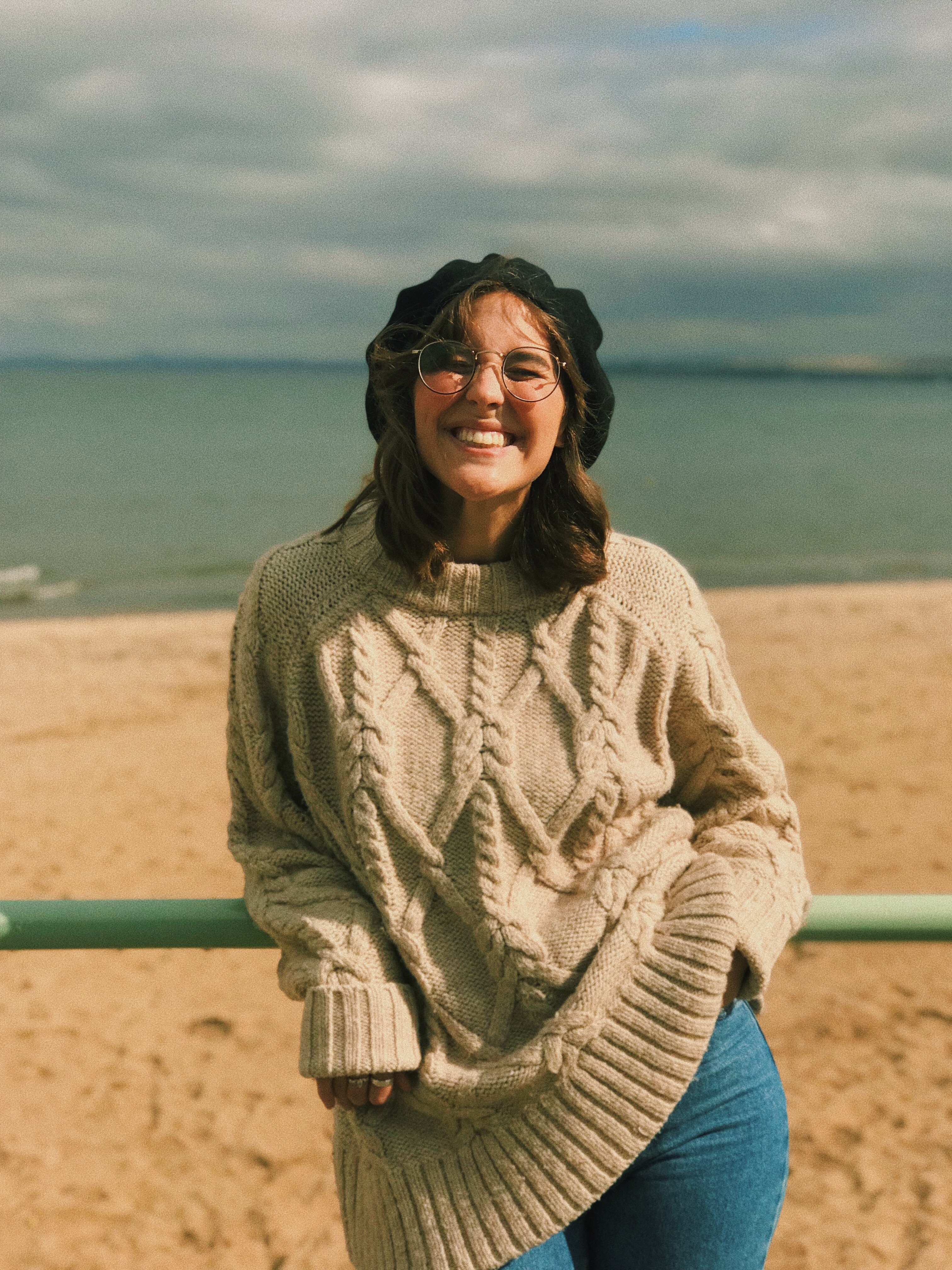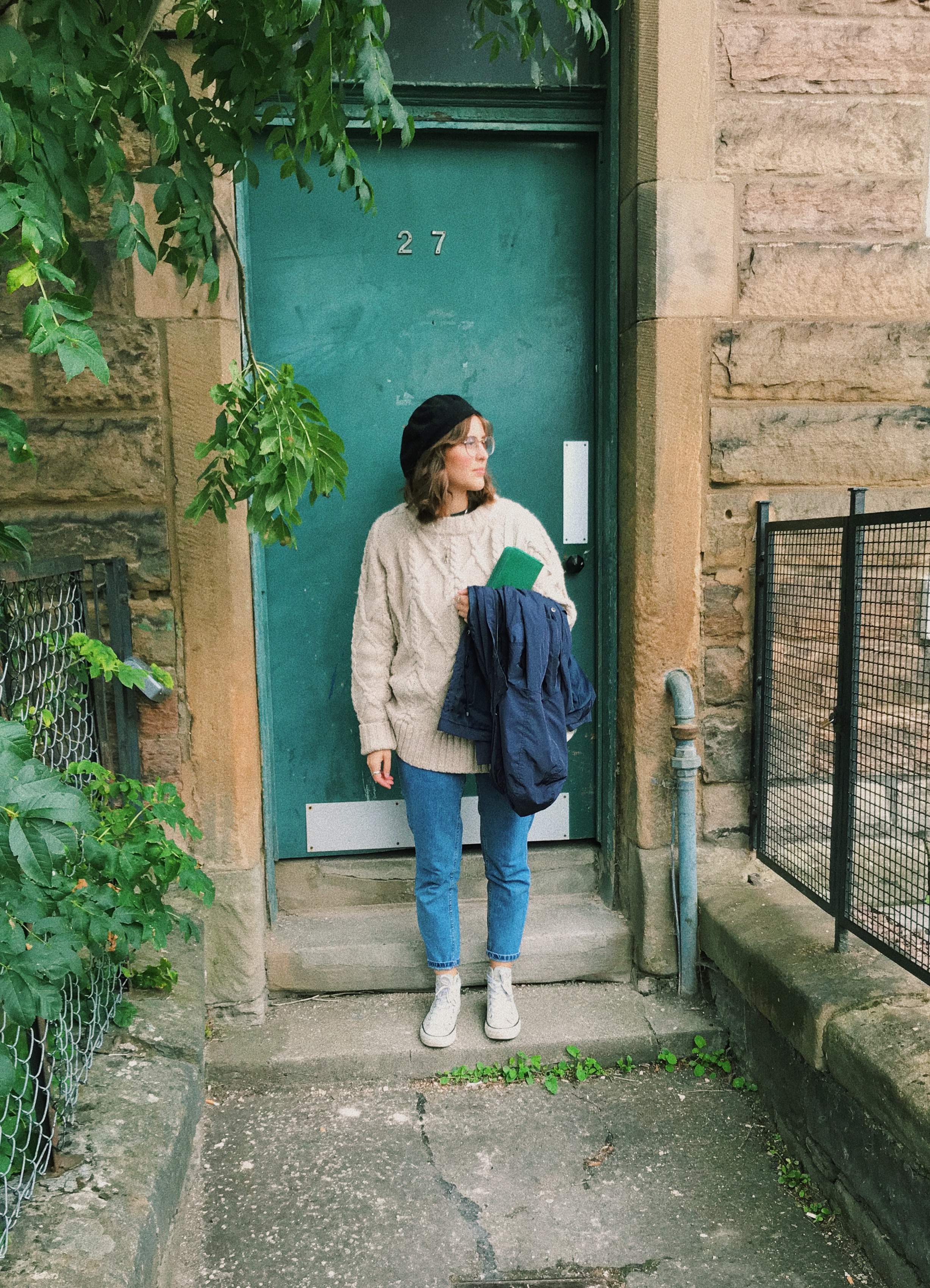 My go-to statement piece is a big, chunky, woolly sweater. It seems to fit right in in Scotland. I arrived in Edinburgh on Friday night, and on Saturday morning my roommate and I immediately set out for the sea. Living by the water has always been SUCH an important thing for me. I love the sounds of the waves and the smell of the air. I find even the sight of water makes me feel at peace. If there’s one thing that goes with the sea, it’s me in warm woolly sweaters.