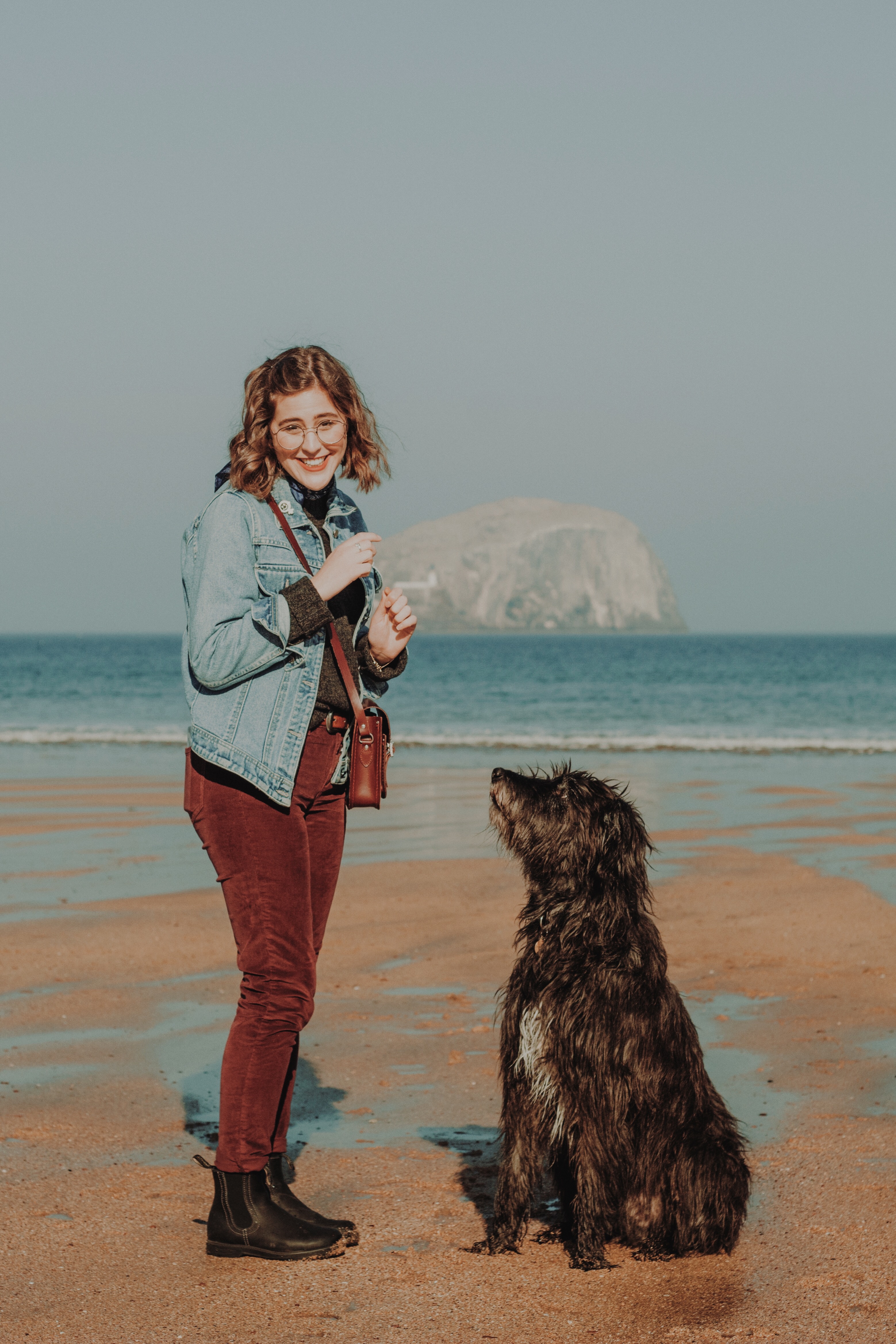It was significantly sunnier and warmer than it usually is that day, but being by the seaside there was (of course) a breeze. I can’t express how great the neck scarf is against a breeze. Working outside day in and day out means my throat PAYS FOR IT. I constantly get colds and coughs and a scratchy throat because Edinburgh is WINDY. The neck scarf just protects you against the wind…. and makes you look very cute in a very French and hipster-esque sort of way. Also. I got to meet Abbi’s dog Fly that day. It was a great day. I promptly texted all of my family and friends to tell them about him. He’s great. He’s big and calm and cute and so very polite. His name is Fly. You can see in the pictures just how much I love Fly.